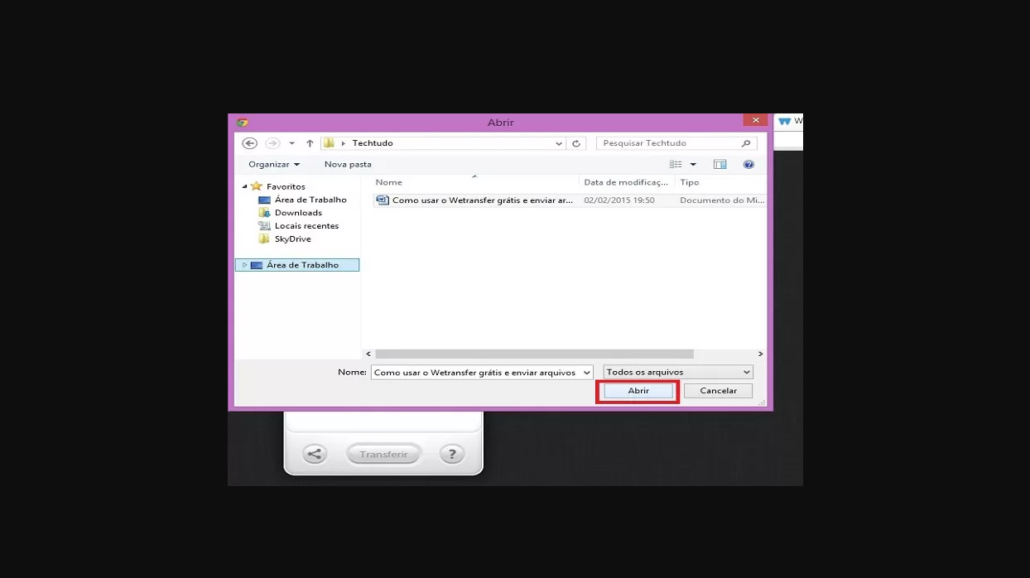 Selecione o arquivo que será transferido e clique em “Abrir”;