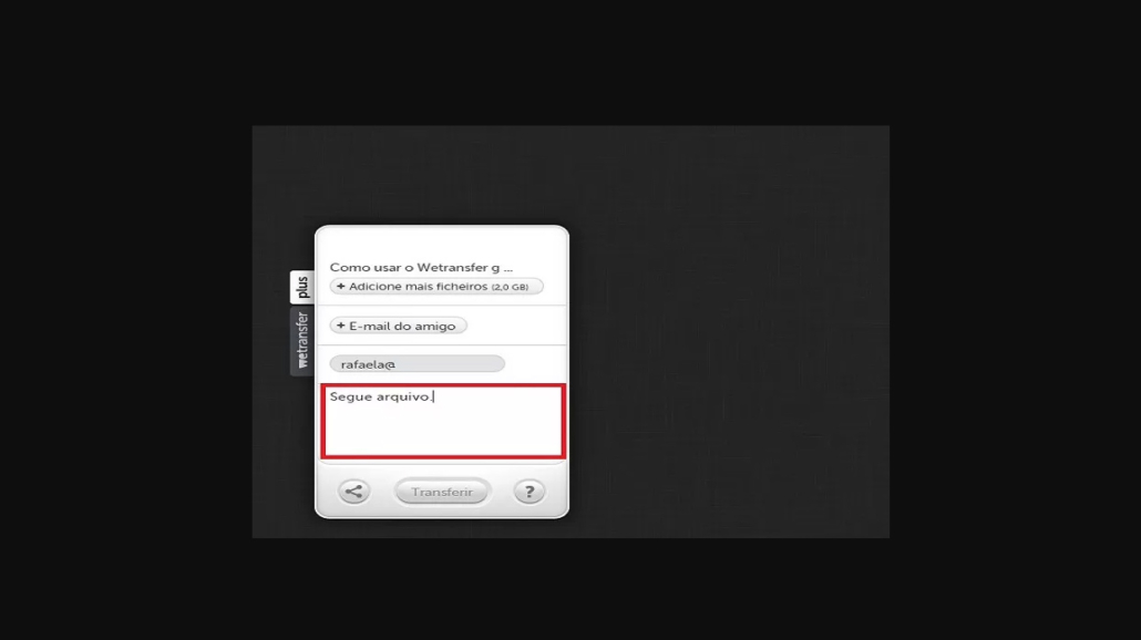 Aqui, o usuário pode adicionar uma mensagem que será enviada junto com o arquivo. Clique em “Transferir”;